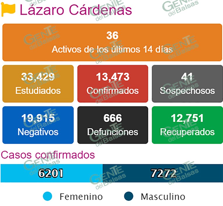 Por su parte, la Jurisdicción Sanitaria 08 dio a conocer que de los dos nuevos casos de COVID-19 registrados ayer en este municipio, uno fue en la tenencia de Guacamayas, que llegó a un acumulado de 3,010 y el otro fue en la tenencia de La Mira, que ahora tiene 1,145 contagios positivos acumulados en todo lo que va de la pandemia.