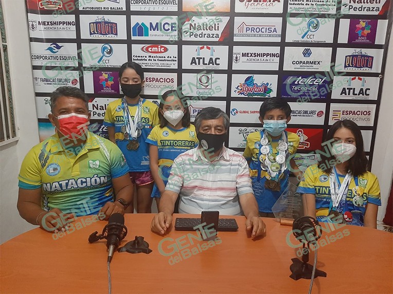 Acompañado de cuatro niños atletas de 8 y 11 años de edad, pertenecientes al club IMSS-Tintoreras que Pérez Bello dirige aquí en el puerto michoacano, acudió a los estudios de El Noticiero de Gente del Balsas, para que los niños Regina y María Fernanda Codemo, Camila Ceceña, Marcos Karim Cárdenas y Federico Pérez Bello, presumieran al auditorio sus medallas que lograron recientemente en la competencia estatal, en donde afirmó, pusieron muy en alto el nombre del municipio de Lázaro Cárdenas.