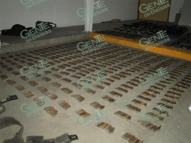 En el lugar, aseguraron dos granadas de humo (micro impacto), un aditamento para lanza granadas calibre .40 milímetros, 13 cargadores y 9 mil 160 cartuchos útiles al calibre 7.62X39 milímetros para fusil AK-47 de los conocidos como “cuerno de chivo”, 27 cargadores y mil 460 cartuchos útiles al calibre .223 milímetros, para fusil AR-15, 20 cartuchos útiles al calibre .38 súper, seis placas balísticas y seis cascos kevlar.