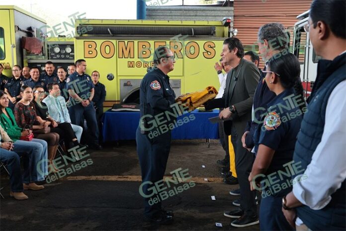 El Presidente de Morelia reiteró el compromiso de la administración que dirige por dignificar el trabajo de las y los rescatistas de Protección Civil y Bomberos, de ahí la importancia de estas gestiones que facilitaron la entrega de un vehículo contra incendios y herramientas que ayudarán a mejorar el servicio que prestan día a día.