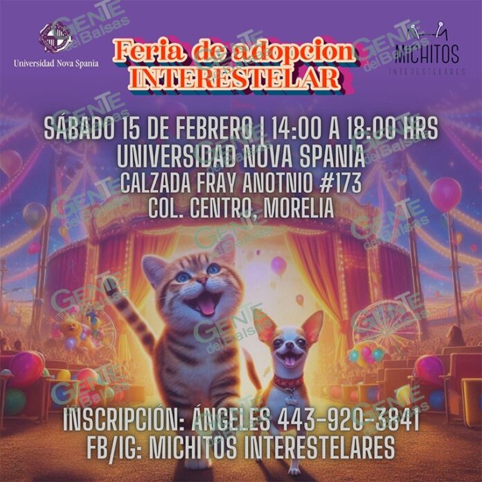 Morelia, Michoacán, 10 de febrero de 2025.- Con el objetivo de darles una segunda oportunidad a decenas de lomitos y michis en busca de un hogar, la asociación civil “Michitos Interestelares”, realizará una feria de adopción el próximo sábado 15 de febrero.