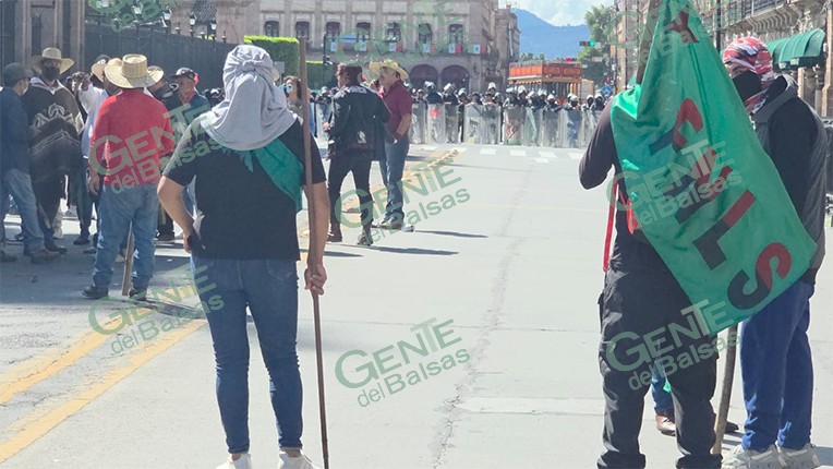 Tras llegar a la avenida Madero, frente a catedral y palacio de gobierno, integrantes del FNLS, enfrentaron a elementos policiacos y causaron daños a dos vehículos turísticos de Morelia.
