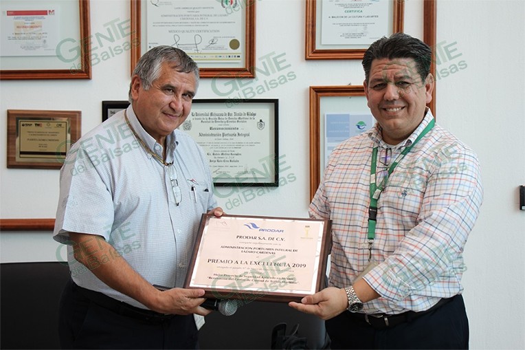 Este reconocimiento se hizo entrega por parte del Director General de PRODAR, Ingeniero Eduardo del Ángel Rincón, quien destacó la gran infraestructura y tecnología de punta con la que cuenta el Centro de Control de Tráfico Marítimo (CCTM) de este puerto. También participaron en este evento el Ingeniero Carlos Martín Aguilar Rodríguez de la empresa PRODAR, los Gerentes de Administración y Finanzas y de Operaciones, Licenciado Guillermo Bonilla Tenorio y Maestro Joel Méndez Reyes y el Ingeniero Mecánico Naval Mario Villalvazo Vila de la Jefatura del CCTM.
