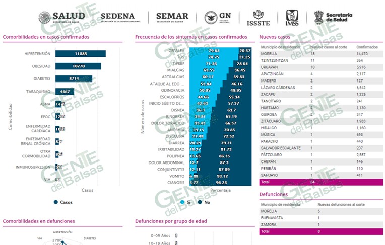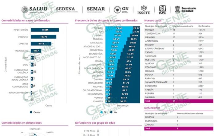 Por lo que hace a las 8 nuevas defunciones, de ellas 6 fueron en Morelia y las dos restantes en Buenavista y Zamora con un fallecimiento por COVID-19 en cada lugar.