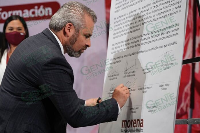 Los gobernadores electos de Baja California Sur, y Norte, de Sonora, Sinaloa, Tlaxcala, Zacatecas, Nayarit, Colima, Guerrero, y Michoacán, firmaron una Carta Compromiso con la Cuarta Transformación y el Pueblo de México, en la que asumen gobernar con base en los principios del obradorismo para acabar con las desigualdades, la discriminación, los privilegios y las prácticas de corrupción.