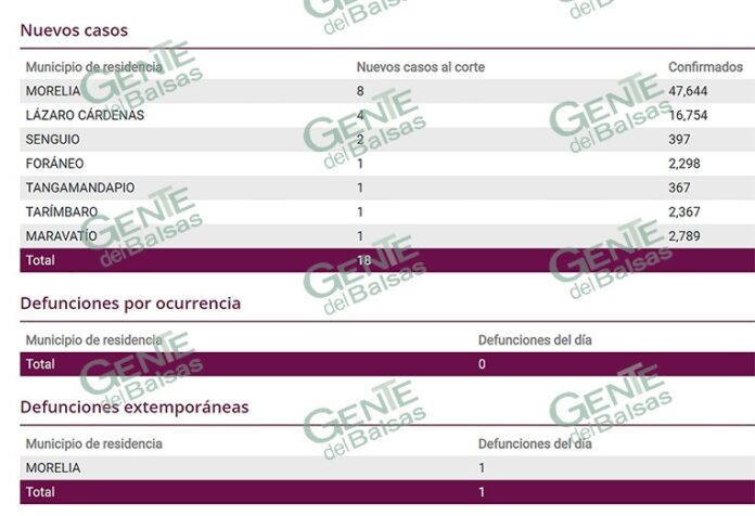 En tanto que la nueva defunción fue documentada en el municipio de Morelia.