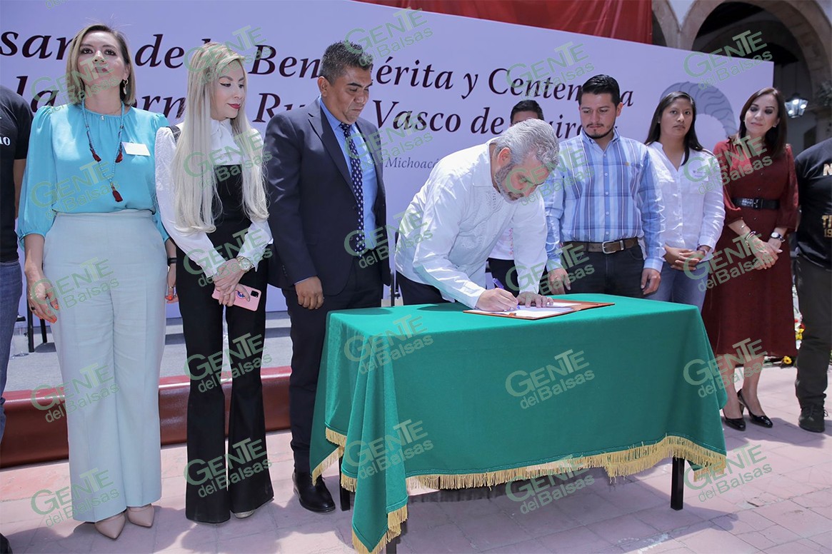 Morelia, Michoacán, 21 de mayo del 2022.- El gobernador Alfredo Ramírez Bedolla firmó la propuesta de iniciativa con proyecto de decreto para declarar como “Primitiva, Centenaria y Benemérita” a la Escuela Normal Rural Vasco de Quiroga de Tiripetío, misma que será presentada, en próximos días, al Poder Legislativo del estado.
