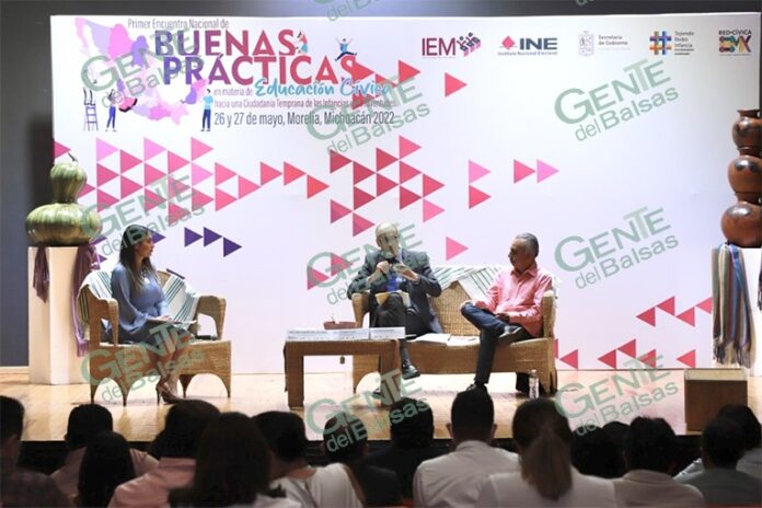 Durante la mesa en el Marco del Primer Encuentro de Buenas Prácticas en Educación Cívica hacia una Ciudadanía Temprana de las Infancias y las Juventudes, moderada por la Consejera Electoral Carol Berenice Arellano Rangel, Presidenta de la Comunicación de Educación Cívica y Participación Ciudadana del IEM, el Consejero Electoral Faz Mora, precisó que una de las ideas principales que orientó este ejercicio fue poner de manifiesto que la expresión de niñas, niños y adolescentes es un derecho que tienen como integrantes de la sociedad y que debe ejercitarse, dejando de lado el modelo adulto-céntrico utilizado en otras versiones de Consultas Infantiles.