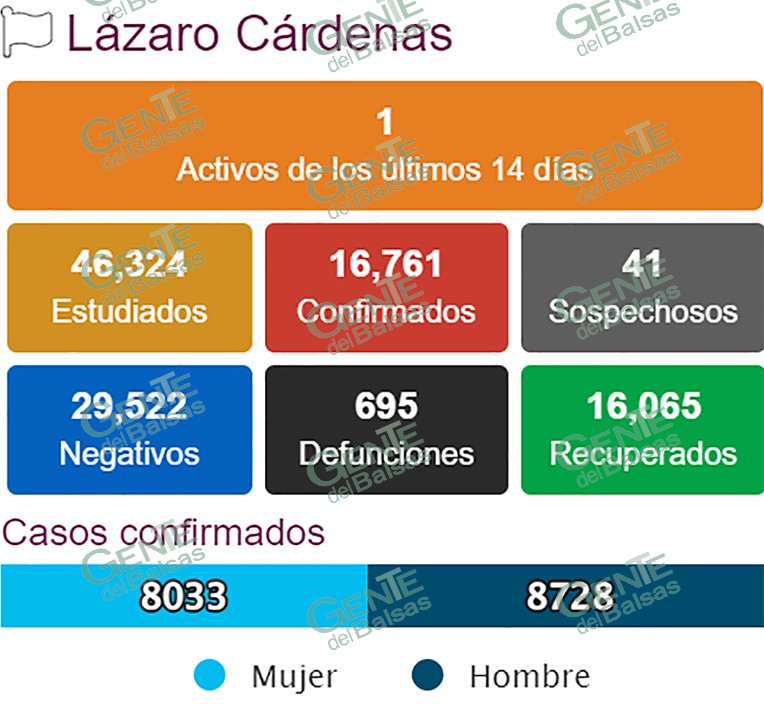 De acuerdo con el reporte técnico emitido anoche por el Centro de Inteligencia en Salud, el municipio de Lázaro Cárdenas solamente tenía ya un caso activo de COVID-19 en los últimos 14 días.