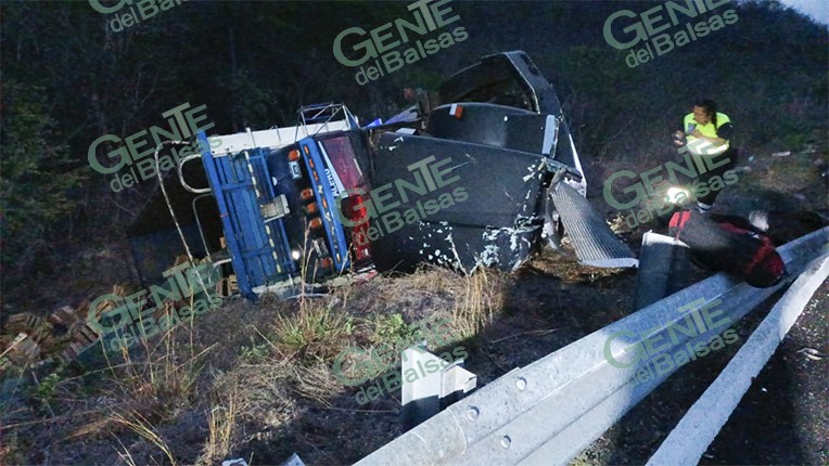 Feliciano, Guerrero.- De nueva cuenta se registró la volcadura de un camión cargado con aguacate, sobre la autopista Siglo XXI, ahora en tramo Feliciano-Lázaro Cárdenas, dejando únicamente daños materiales.