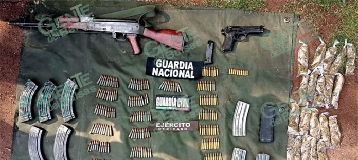 El armamento y municiones aseguradas a presuntos delincuentes.