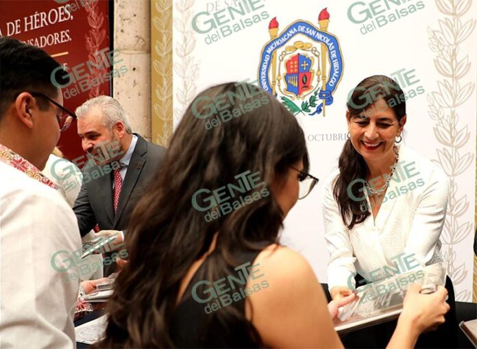 La titular de la SEE, Gabriela Molina Aguilar, destacó la importancia del trabajo por la educación en Michoacán, que realiza la casa nicolaita, dirigida por la rectora Yarabí Ávila González; asimismo, celebró el ejemplo de los más de 300 jóvenes que recibieron el premio Padre de la Patria, por su excelencia en el desempeño académico.