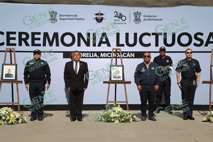 Ayer en Morelia, en las instalaciones de la SSP, se rindió un homenaje póstumo a los tres agentes de la Guardia Civil asesinados el pasado domingo en Pátzcuaro.