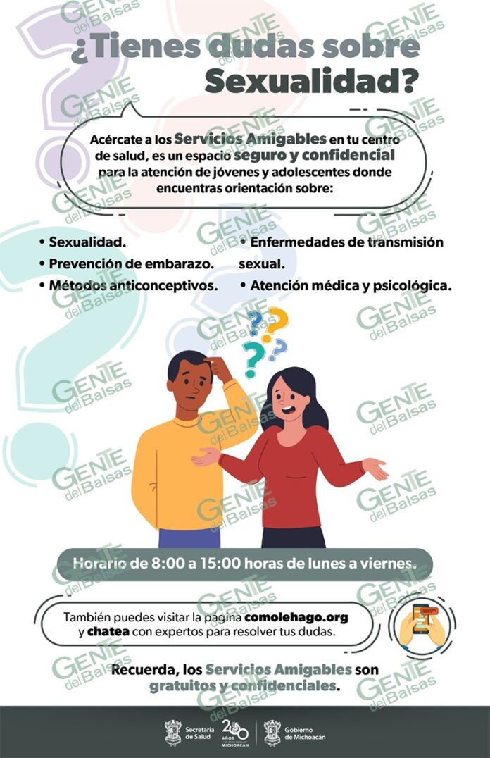 Morelia, Michoacán, 26 de marzo de 2024.- La Secretaría de Salud de Michoacán (SSM) resuelve dudas y orienta a jóvenes en el uso de métodos anticonceptivos y la prevención de embarazos en los consultorios de servicios amigables, disponibles en 182 centros de salud del estado.