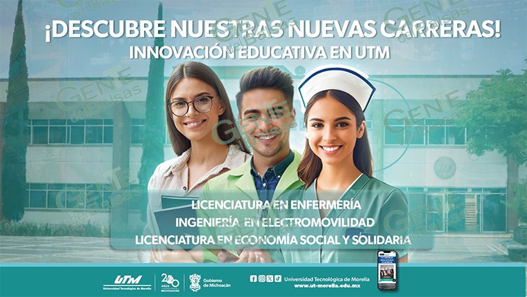 Morelia, Michoacán, 2 de junio de 2024.- La Universidad Tecnológica de Morelia (UTM) anuncia la ampliación de su oferta educativa para el cuatrimestre que inicia en septiembre de 2024. Las nuevas carreras disponibles serán Enfermería, Electromovilidad y Economía social solidaria.