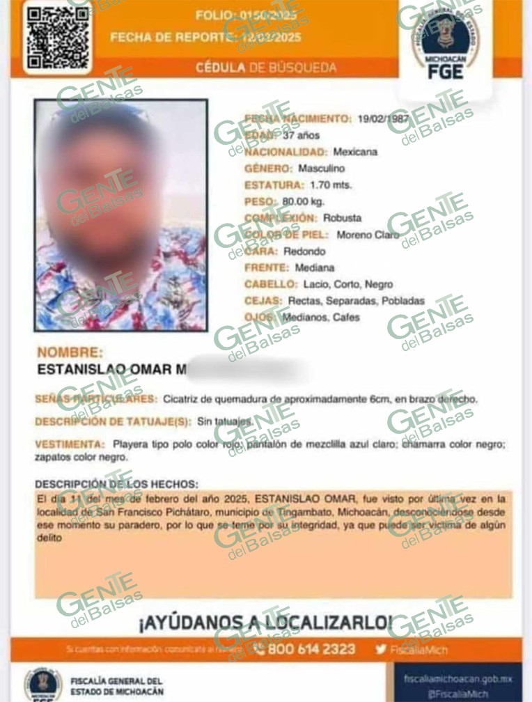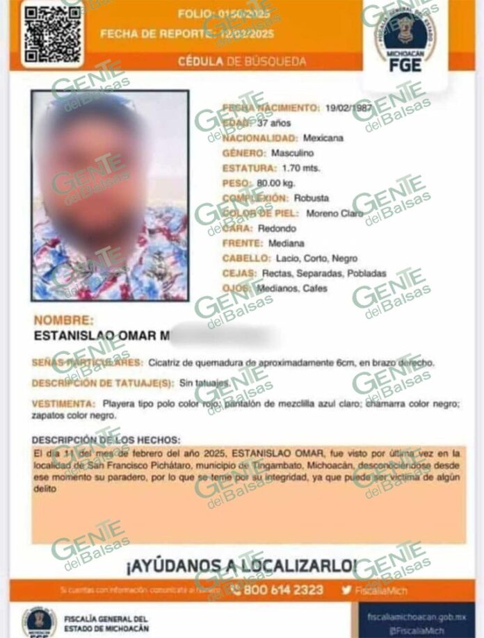 Posteriormente la víctima fue identificada ante las autoridades ministeriales, diciendo sus familiares que se trataba de Estanislao Omar, cuyos familiares bloquearon por dos días consecutivos los accesos al municipio de Pátzcuaro solicitando ayuda al gobierno para localizarlo con vida.
