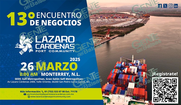La Comunidad Portuaria de Lázaro Cárdenas (Lazaro Cardenas Port Community) llevará a cabo su 13° Encuentro de Negocios, el próximo 26 de marzo de 2025 en la ciudad de Monterrey, Nuevo León. Este evento tiene como principal objetivo generar un espacio de interacción y colaboración entre empresas del sector logístico, comercial e industrial, promoviendo los servicios y ventajas competitivas del Puerto Lázaro Cárdenas para atraer clientes reales y potenciales.