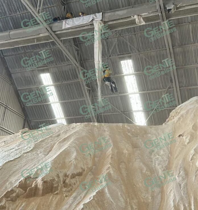 Todo se registró la mañana de este lunes, cuando el trabajador realizaba actividades propias de sus labores en uno de los almacenes, cuando de manera accidental cayó a un montículo de pasta de soya y comenzó a hundirse.