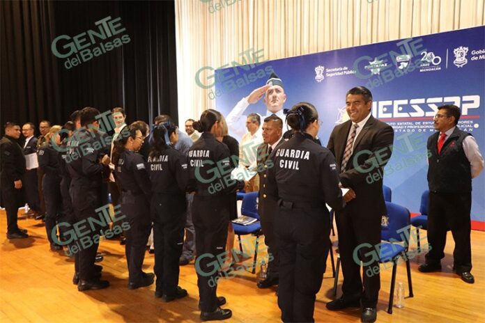 Morelia, Michoacán, 7 de octubre de 2025.- El Instituto Estatal de Estudios Superiores en Seguridad y Profesionalización Policial del Estado de Michoacán (IEESSPP) entregó más de 60 certificados a policías que concluyeron satisfactoriamente su formación como técnicos superiores universitarios en seguridad pública.