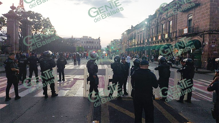 Morelia, Michoacán, 2 de noviembre de 2025.- El Palacio de Gobierno se encuentra resguardado por elementos de seguridad estatal, luego de los actos vandálicos registrados esta tarde en el Centro Histórico de Morelia, informó el secretario de Gobierno, Raúl Zepeda Villaseñor.