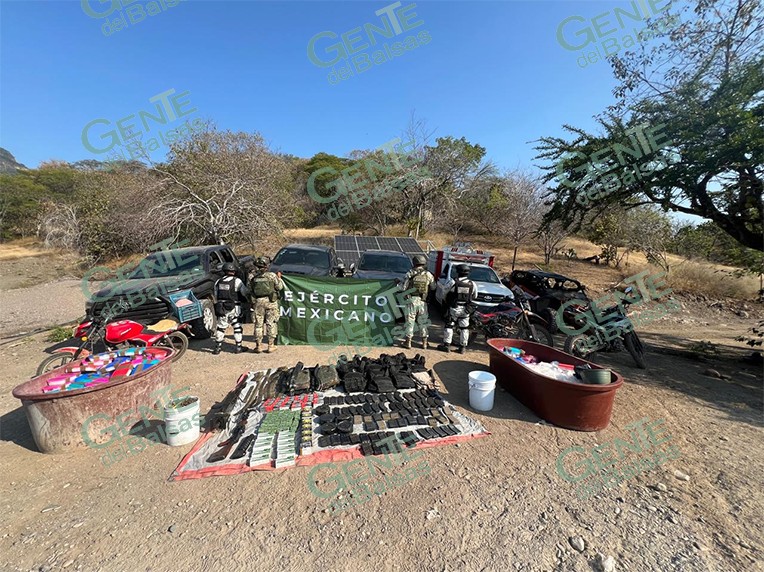 Huetamo, Mich., 9 de noviembre de 2025.- Elementos operativos de la Secretaría de la Defensa Nacional (Defensa) y de la Guardia Nacional (GN) aseguraron en el municipio de Huetamo 14 armas largas, más de 300 kilogramos de droga, ocho vehículos y cartuchos útiles, en distintas movilizaciones.