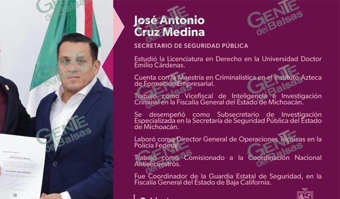Ayer fue designado como nuevo Secretario de Seguridad Pública de Michoacán, José Antonio Cruz Medina, quien se venía desempeñando como Vicefiscal de la FGE.