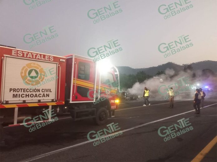 Uruapan, Michoacán a 6 de enero del 2026.- Sin víctimas se registró el incendio de una pipa en la Autopista Siglo XXI, al parecer por una falla mecánica, y fue atendido por bomberos de la Delegación Uruapan.