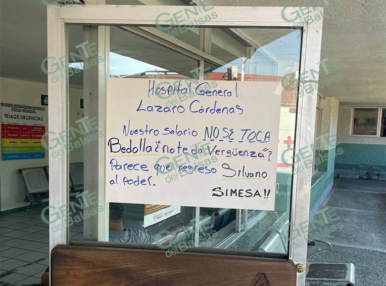 “Todo trabajo realizado debe ser pagado. O acaso desconoce la ley sr. gobernador”, se anota en un cartel instalado en el Hospital IMSS Bienestar, la unidad médica de esta ciudad, que atiende médicamente a importante número de población de las costas de Michoacán y Guerrero.