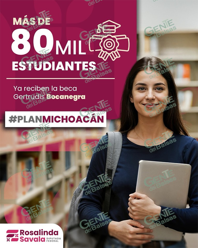 La diputada federal Rosalinda Savala Díaz dio a conocer, a través de sus redes sociales, que al día de hoy más de 80 mil jóvenes en el estado ya son beneficiarios de la Beca Gertrudis Bocanegra, programa impulsado por el Gobierno Federal para fortalecer el acceso y la permanencia de las y los estudiantes en el sistema educativo.