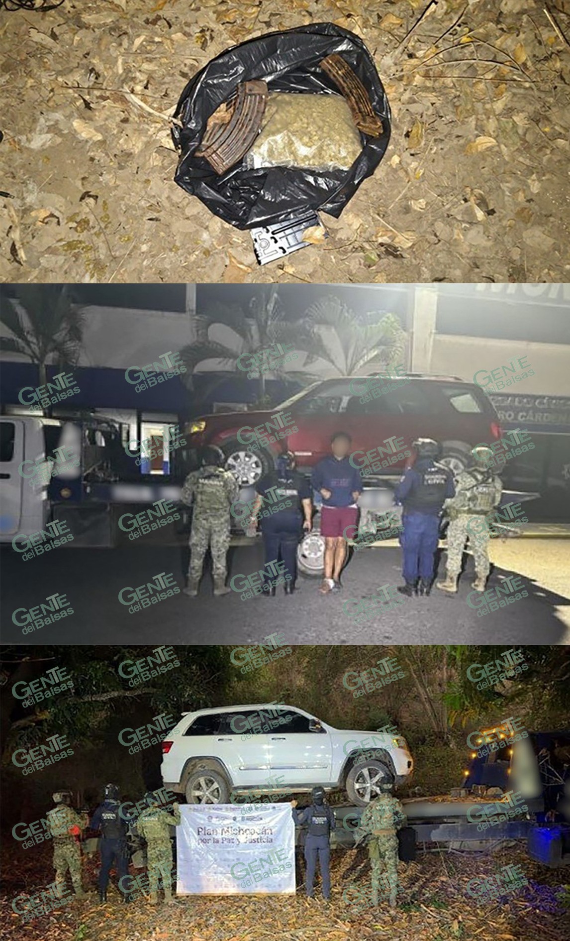 La Secretaría de Marina, a través de la Armada de México, por conducto de la Décima Sexta Zona Naval, informa que, como resultado de las acciones interinstitucionales de vigilancia y seguridad realizadas en el marco del Plan Michoacán por la Paz y Justicia, se realizó el aseguramiento de presunta droga, vehículos y material diverso en municipios de Michoacán.
