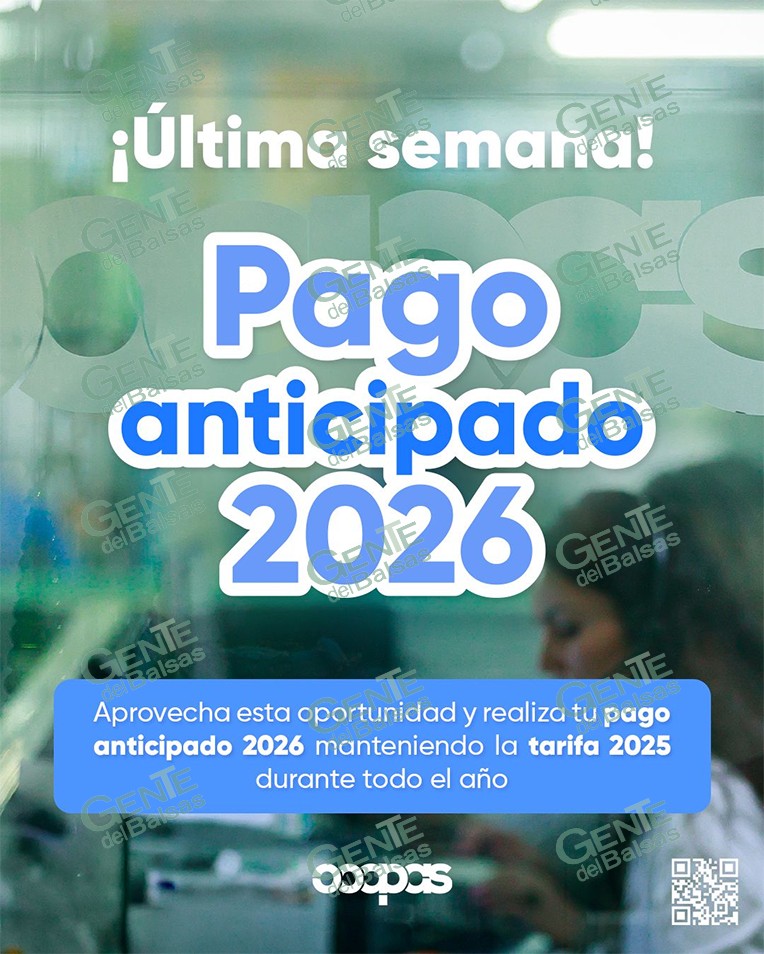 Morelia, Michoacán; 23 de febrero de 2026.- El Organismo Operador de Agua Potable, Alcantarillado y Saneamiento Aprovecha (Ooapas) invita a aprovechar los últimos días del programa de Pago Anticipado, que permite cubrir por adelantado el servicio de agua potable correspondiente a todo el año 2026 con la tarifa del 2025.
