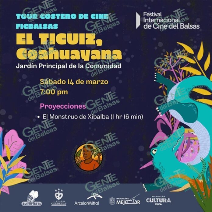 Coahuayana, Mich., 11 de marzo de 2026.- Una invitación a todos los coahuayanenses es la que hace el Pueblo Afromexicano El Ticuiz a participar y disfrutar de la función especial del Festival Internacional de Cine del Balsas (FIC Balsas) que como parte del Tour Costero se presentará en el jardín principal de la comunidad el próximo sábado 14 a las 19 horas (7 de la noche).
