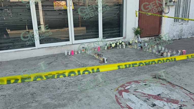 Afuera, el silencio es distinto al de otros días, se observan veladoras y ramos de flores. Es un silencio que pesa.