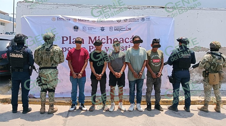 Apatzingán, Mich., 14 de abril de 2026.- Como resultado del reforzamiento de acciones operativas en la región de Tierra Caliente, elementos de la Guardia Civil aseguraron a cinco hombres en posesión de presunta droga en la localidad de Cenobio Moreno, perteneciente al municipio de Apatzingán.