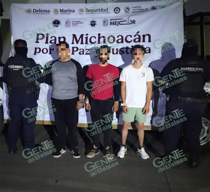Jacona, Mich., 22 de abril de 2026.- Derivado de una acción preventiva, elementos de la Guardia Civil en coordinación con la Policía Municipal detuvieron a tres hombres en posesión de un arma de fuego, en la región Zamora.