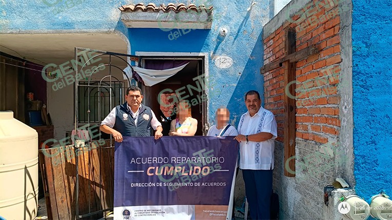 Tarímbaro, Michoacán, a 28 de abril de 2026.- La Fiscalía General del Estado de Michoacán (FGE), a través del Centro de Mecanismos Alternativos de Solución de Controversias (CMASC), facilitó la solución de un conflicto por despojo que culminó con la restitución de un inmueble a su legítima propietaria, en el fraccionamiento Privadas del Sol, en este municipio.