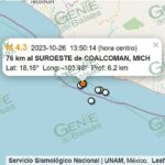 Por Ángel MéndezCoahuayana, Mich., 26 de octubre de 2023.- Un sismo de magnitud 4.3 ocurrido a las 13:50 horas de este jueves, sacudió la...